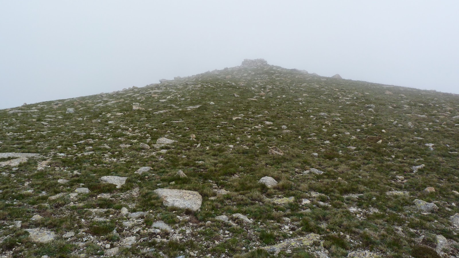 Nous ne sommes plus très loin de la borne 2440 m, mais le brouillard se rapproche.